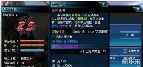 在新版本中,将开放帮会任务功能。在帮会信息中点击贡献选项可以查看帮会任务。