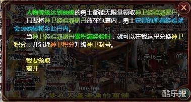 只要将神卫经验凝聚丹放在包裹中,各位勇士获得的所有经验就会100%转移至此丹中。