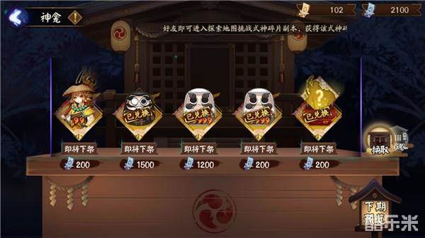 另外在看本篇攻略的萌新小伙伴不要忘记去神龛兑换指定的六星御魂: