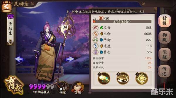 b.青坊主队伍速度也是比较快的,这里有几点比较麻烦,第一是需要标记挂草人,其次对青坊主的御魂要求比较高,最后是青坊主的使用情况比较局限化,单纯为了一个魂十去培养青坊主是不太划算的!