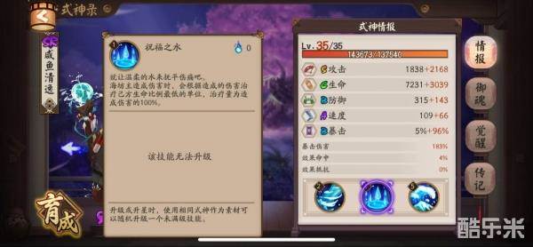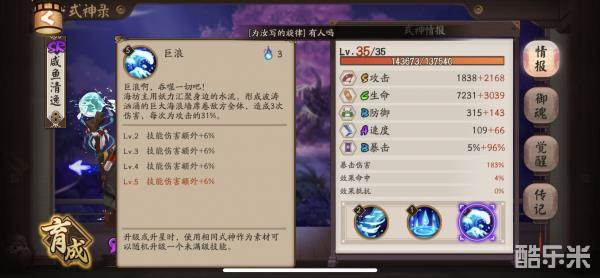 觉醒后加强,海坊主的灵魂技能,输出+奶奶奶!!!不过,这里需要特别注意,由于鱼头一次只能奶最多两个式神。。。。所以,它不能完全替代奶妈的位置。。。