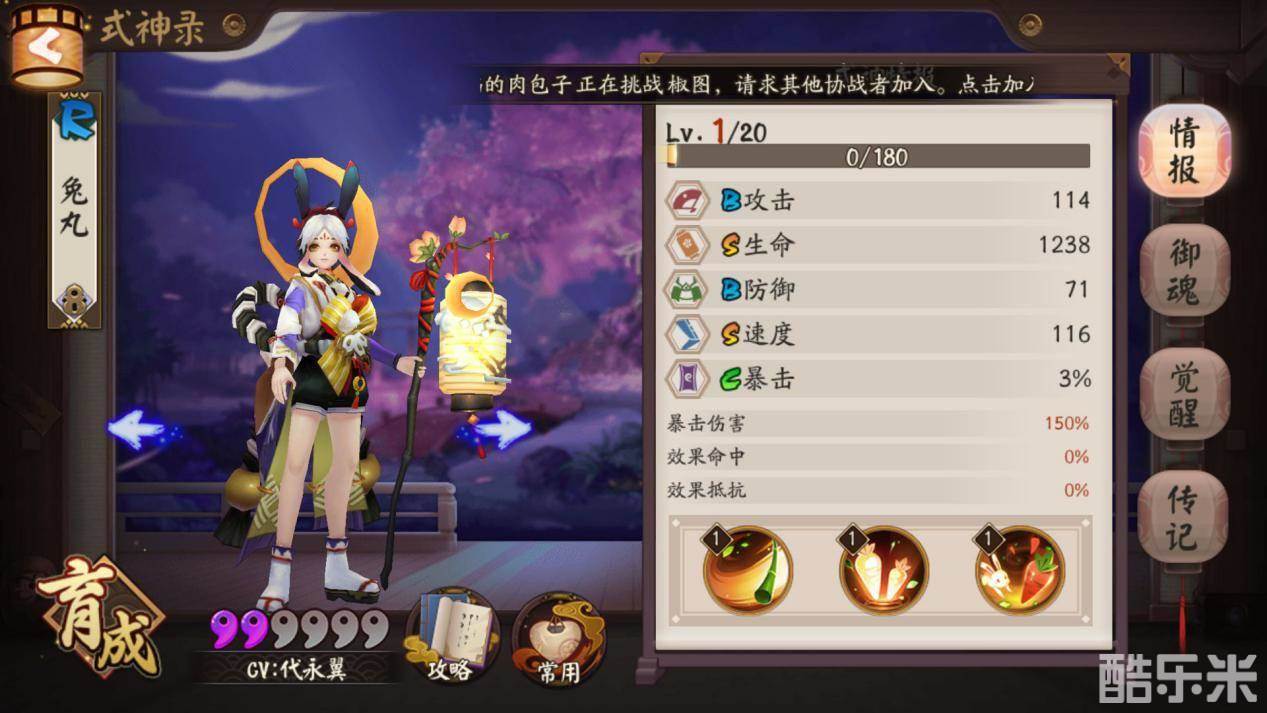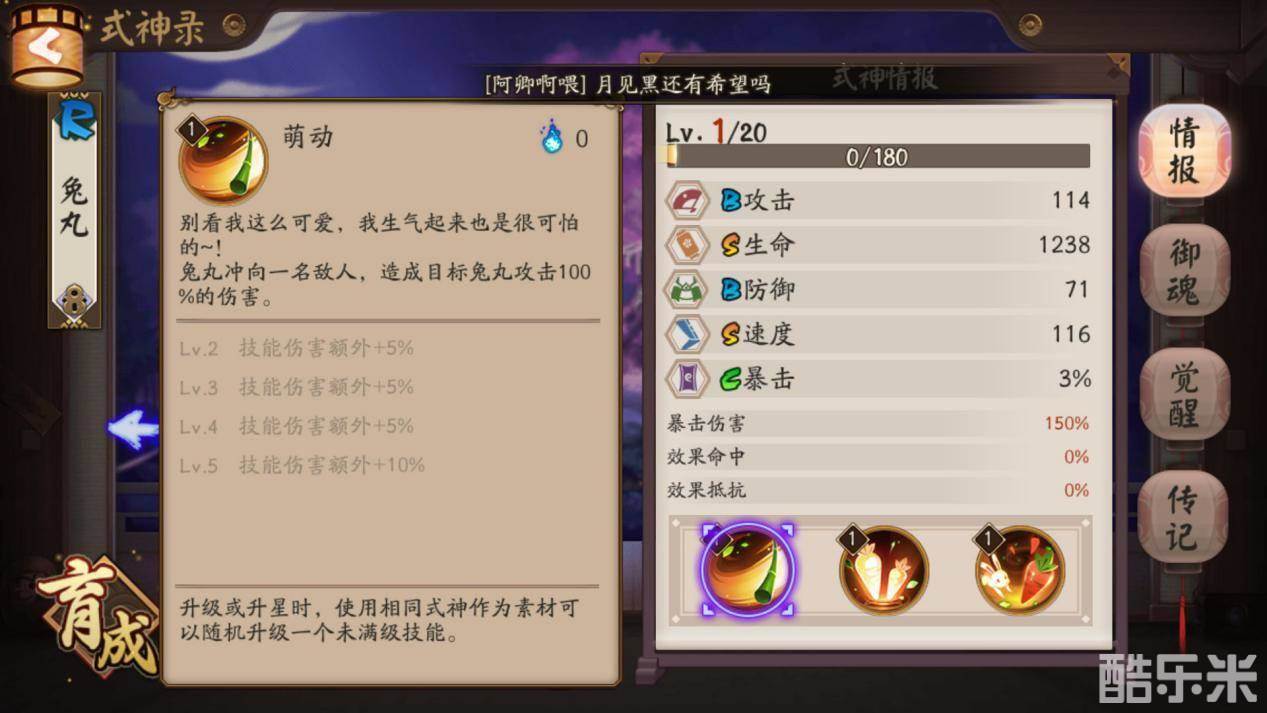 觉醒后的兔丸生命和速度达到了S,很适合作为辅助的属性。