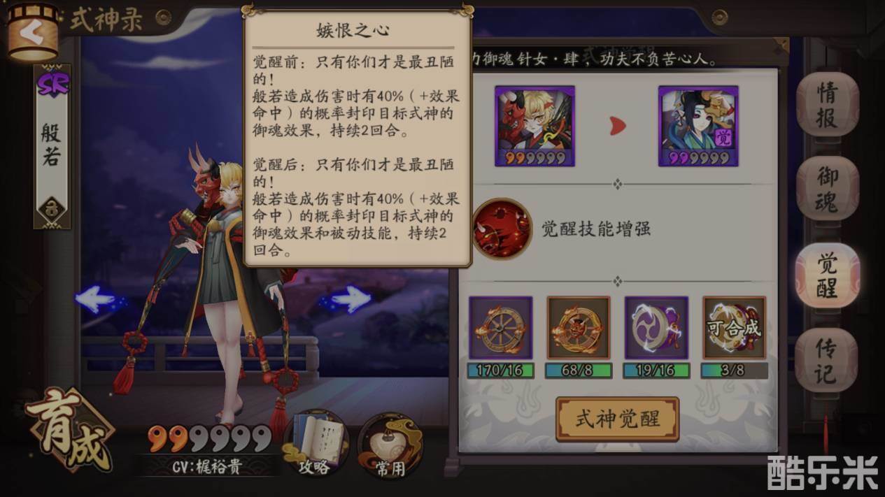 般若:看家本事封御魂效果,觉醒后还可以封印式神被动,犬神的反击也没啦。