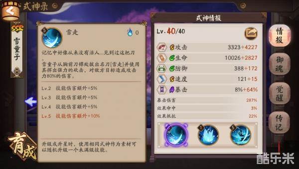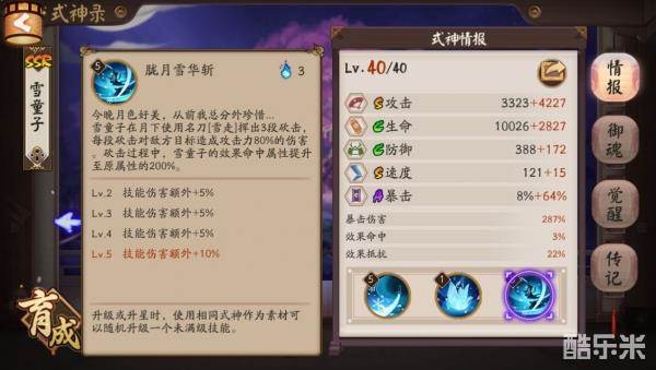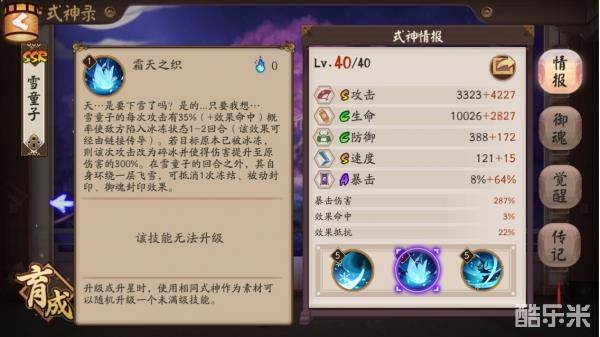 碎冰是雪童子输出的核心被动,可以打出很爆炸的伤害,触发碎冰后,秒掉比较脆皮的六星输出式神是件很轻松的事情。