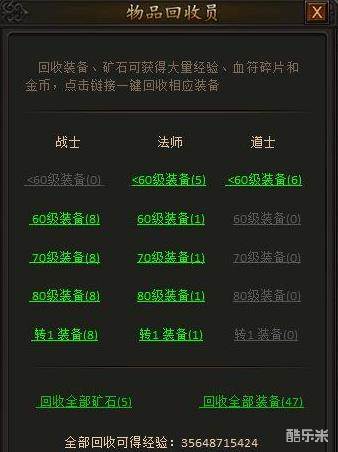在高等级情况下,打怪等获得经验途径效率降低,装备回收成为重要的经验来源,所以平常打BOSS获得的多余装备一定不要扔,在装备回收员出回收,可以获得大量的奖励哦!