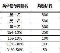 英雄擂排行榜就是通过打擂台取得胜利的积分来排名的。排名的位置决定你钻石每天和每周的多少。(可每天膜拜得经验和金币(第一周不可膜拜)