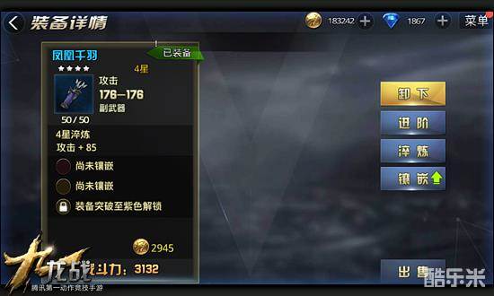 完成宝石合成后,玩家点击【装备】进入装备界面,选择需要镶嵌宝石的装备,点击【镶嵌】后,【宝石】一栏列出当前角色所拥有的宝石,点击【镶嵌】按钮,即可完成镶嵌。蓝色装备解锁2个宝石孔,装备突破至紫色即可解锁3个宝石孔。