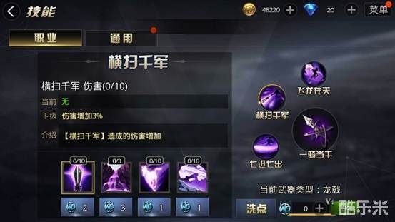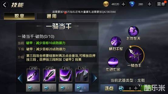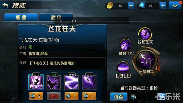 C、一骑当千 银枪和龙戟是建议点满的,银枪和龙戟作为游龙的攻击输出中心,显然点加的越高,攻击力就越强悍。所以小编建议家满。
