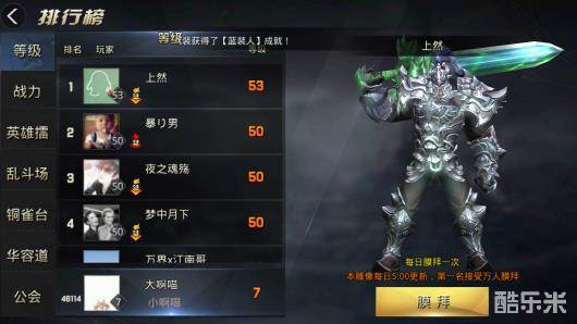 玩家可以对排行榜中的第一名进行膜拜就可以直接获得经验,是不是很简单直接呢?对于5级左右的玩家来说,新区的玩家可以达到6级,老区的玩家可以达到8级。膜拜的好处是可以先升级,战力提高在后面的任务中也相对简单和轻松。