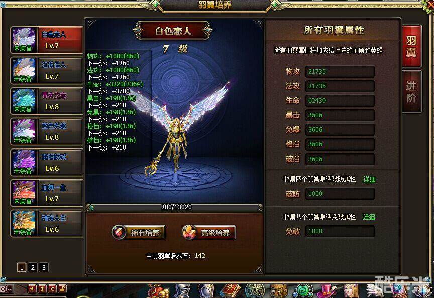 翅膀是很重要的,为何这么说呢,因为他所有的属性可以加在所有的上阵英雄包括主角里面,比宠物时装什么的来的爽快。。。