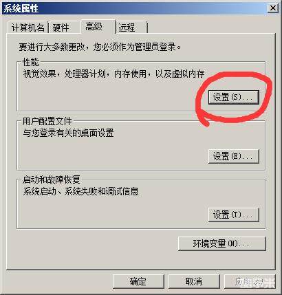 在系统属性页面,点击高级选项卡,在性能栏中点击设置。
