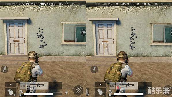 可以看到图中两种枪在墙上留下的弹孔,左侧的是M16,弹孔比较集中,上下抖动不太大;而右侧的是AKM,弹孔分布上下浮动较大,所以很明显M16在稳定性上大于AKM。在实际战斗中,M16的实用性必然要优于AKM。如果在没有配件的情况下,M16的性能甚至比M4和Scarl还要好。