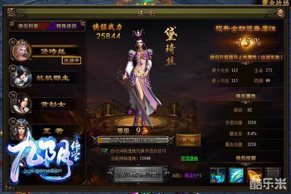 3、侠侣属性:(满级110级状态)
