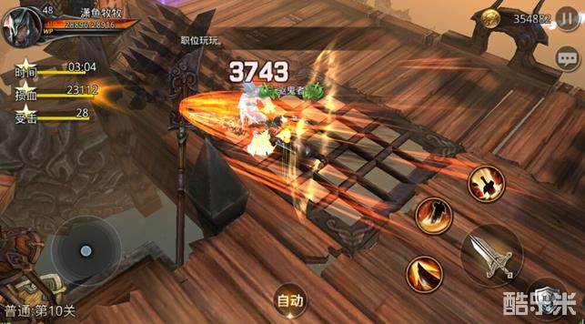 小兵打法:上场出现第一波兵,原地不动等待敌军靠近,先手普攻+技能,轻松带走一波,对于强化过装备的玩家来说小兵还不够一个技能的伤害。但是不可轻敌,此关主要阻碍我们取得三星通关的障碍是敌军后排射手。就拿第一队兵来说,虽然一个技能完全可以击杀前排兵,但是后排并躲在拐角处,我们需要靠近躲避攻击和击杀。切勿两点一线直接跑过去,先稍微靠近,然后向射手左右两边任意方向跑开,一旦射手释放普攻,面向射手点击普攻会施法冲刺,直线到达射手面前。然而并非每一次射手都是单独一只,在被围殴的时候,后排有射手在点射,可以立即使用技能躲避,在副本中使用技能期间是无敌存在的。另外如果是操作大神,可以使用普攻下面的防反格挡,在普攻释放之前释放可以免去伤害和被击数,在普攻刚好快落在身上的时候使用会释放反防技能,技能期间伤害免疫(反防不推荐新手使用)。听我这么一讲解技巧,相信大家对于前面的小兵来说,都是小菜一碟,轻松搞定,那么我们就直接说如何击杀BOSS。