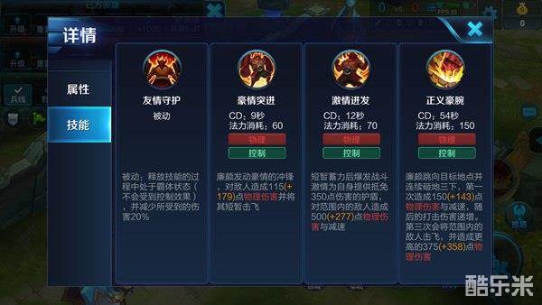 2、其余三个技能均存在不同程度的控制能力。一技能向敌方目标突进并击飞敌人。二技能蓄力期间获得一定值护盾,蓄力完毕对附近敌人造成减速与物理伤害。三技能向目标地点连砸三下,造成大范围伤害并减速敌人,第三下将击飞范围内敌人。