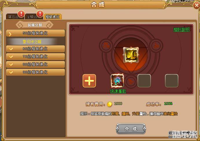 宝石宝石合成高级宝石。合成成功有概率,大家可以使用多种保护符提升成功率。此外,大家要注意,宝石等级越高合成的成功率越低,100%保护符将是一个不错的选择哦。