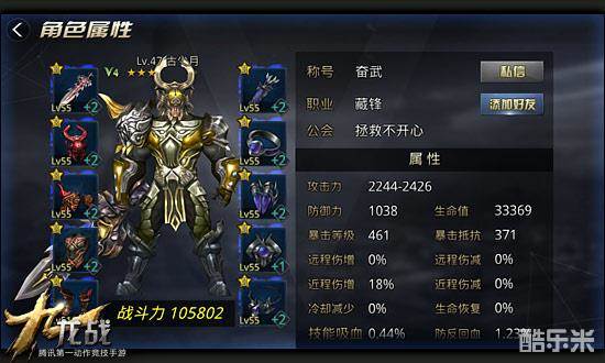 最后编辑于7年前《九龙战》“藏锋”职业,作为游戏中的近战英雄,擅长攻击,是战场上的杀戮机器,单挑也是非常凶狠的,真所谓重剑长胜三千战,崩山武艺天下尊。那么,在战场上,特别是1V1的战斗中,怎么样使用藏锋才能最大限度的发挥其潜能呢?今天,曾为排名榜职业藏锋第一的玩家,就与大家做独家解读。