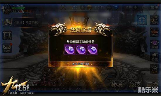 《九龙战》主线任务为经验最多,奖励最为丰富,玩家每到一定等级必做的任务。该任务不仅仅为副本任务,更全面涉及到游戏各大领域内容,兼容市面上其他游戏的支线、引导等任务体系;同时全程配套智能引导系统,最详尽的文字与CG引导玩家了解、认识、掌握游戏丰富的玩法。