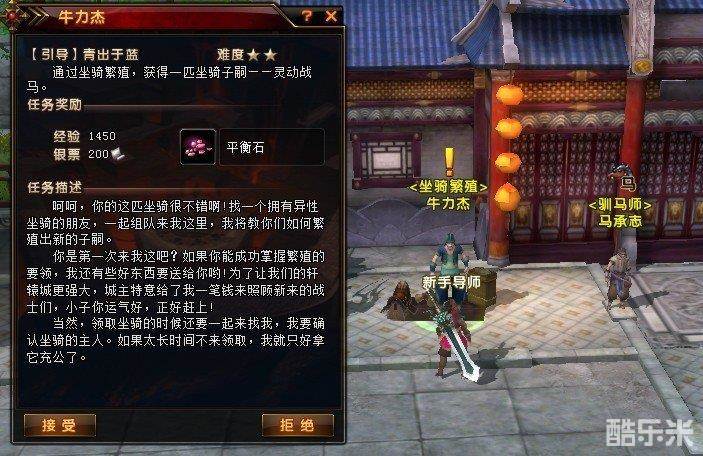 还记得当年黑木林捕获的那匹马吗?相信你在成长的过程中也一直没有忘记培养它吧!在25级的时候,可以在坐骑繁殖区域找到NPC牛力杰,他会帮助你完成一系列的繁殖引导的,相信他没错的!通过繁殖获得坐骑子嗣还可以通过炼化提升它的速度,胆气,稳定属性哦!相信在地宫副本内,一匹好马能让你在战场上发挥最大的作用!