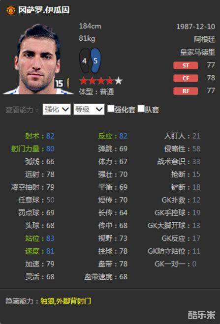 FIFAOnline310U伊瓜因初始能力介绍(有加成):