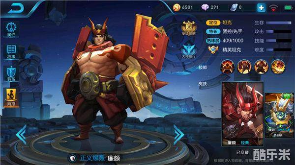 廉颇在释放技能时会有高额的免伤效果和霸体状态,可以使他无所畏惧的进团释放技能后还能全身而退。廉颇的一技能是一段突进效果,会对敌人造成击飞,既可以用来追击也可以用来逃跑,在有刺客来切队友时可以用一技能击飞敌人后接自己的大招,大招有减速效果,如果敌人没有位移技能很难躲掉,再次把敌人击飞就可以配合队友击杀敌人了。后期团战时廉颇可以先手开团,用有一技能进团替队友吸收敌人的控制技能和伤害,然后开启大招减速击飞敌方,打出团控的效果,然后再用二技能补足伤害,最后就可以配合队友收割敌方残血英雄了。