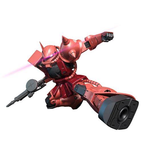 MS-06S 夏亚专用渣古II是吉翁军在原有杰作量产机MS-06F/J的的基础上,加强了一定的防护性能,并针对王牌驾驶员夏亚·阿兹纳布尔的能力,将机体的推进力极限增幅,使得该机体在夏亚的操控下拥有远超一般渣古的高机动性。更因为其独特的红色涂装、队长机专属的角状天线,以及开篇台词中拥有三倍速的夸称,在民间大家都亲切地称呼为“红色有角三倍速”。而《敢达争锋对决》之中,更以最新审美重新诠释了“赤色彗星”的外观,其细节描写更是媲美完美制作的钢普拉,从足底到全身的任何一处的纹路都颇为用心;并忠实还原了夏亚专用渣古的各类魄力杀招,尽显始祖宿敌的绚丽风采,足以让情怀粉丝和萌新体会到这一台经典机体的魅力。