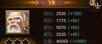 华佗是目前游戏里所有武将中回血最快的,并且他的初始武将资质也达到了最高的39,所以在像血量、策攻、策防等属性上表现都是十分出色的,在被动技能的选择上,也自然是搭配那些可以提高全军治疗效果的技能,根据提升这几点,小编个人推荐的阵容是许褚+董卓+张角+华佗+周瑜。