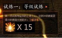 第一项试炼考验你的勇气,在3月27日前达到30级就能获得15枚燃烧大地碎片。当您达到30级后,请在3月29日或之后,登录《时空裂痕》礼包兑换平台,选中“等级试炼报名”,并选择一名角色领取奖励。