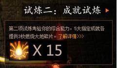 第二项试炼考验你的能力,每达成1个指定成就就能获得3枚燃烧大地碎片。您必须在3月20日前于礼包兑换平台选择“成就试炼报名”,进行【提前报名】才能参加成就试炼。