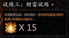 第四项试炼考验你的运气,在许愿池里也许会有你需要的东西。只要您参加“许愿池回馈iPhone5”活动,就有机会从中获得数量不菲的燃烧大地碎片。