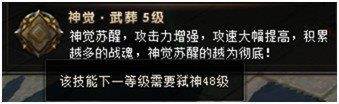 神觉则是爆魂技能,战斗中攻击以及释放技能吸魂积累,玩家主动释放。释放后可在短时间内获得攻击速度提高,生命以及魔法快速恢复,移动速度大幅提高等效果。弑神每升级到8级、18级、28级……以此类推,将会自动升级神觉技能。