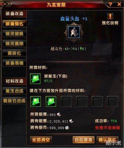 条件:消耗强化玉及银票,银票不足时则以银币代替;