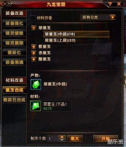翠星玉对应1-29级装备;紫星玉对应30~39级装备;赤星玉对应40-49级装备;不同对应级别的玉不能相互转换;