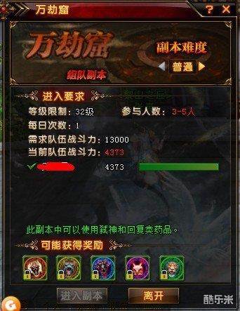 30级以上的勇士每天可以组队进入万劫窟1次,需要至少3位勇士组队进入才可挑战!