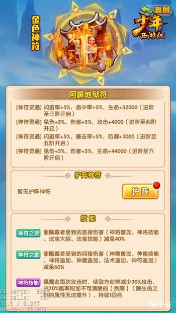 同时,两款神符在对决中还可发挥强力的控制能力。每当佩戴“阿鼻地狱符”的神将攻击时,它可概率降低敌方前排神将的攻击,同时,并为其附加“贪障”状态,处于该状态的神将无法获得除了生命之外的增益属性,此消彼长,从而使我方更容易占据主动。