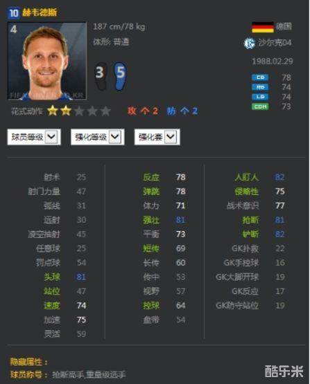 赫韦德斯,沙尔克04队长,同诺伊尔一样自家培养出来的优秀青训苗子,2014年同德国众队友拿到世界杯冠军。身体素质过硬,抢断力强,头球优秀,在FIFA Online3中,10U赫韦德斯也是其自身的巅峰卡,对于沙尔克04来说是必不可少的中后卫人选。自身的速度和战术意识太低,不适合向现实比赛中一样放到边后卫,攻2防2的参与度也很吃紧,需要个清道夫搭配比较合适,但总之还是“矿工”不可或缺的后防支柱。