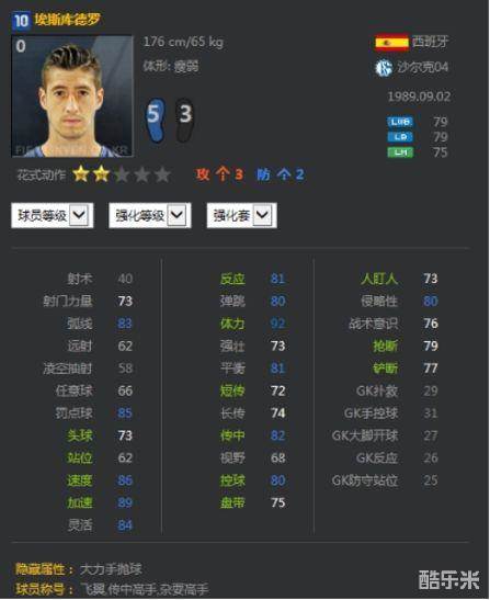 10U埃斯库德罗有着86+双速,弧线和传中也不赖,更何况还有着92的体力,还具备“传中高手”的称号,10U埃斯库德罗不仅是个人巅峰卡,同时笔者认为追求性价比的同时,他是一个很好的边路人选。在防守抢断和侵略性的数值也不俗,沙尔克04套玩家必入此卡,明星套看大家的喜爱了,喜欢下底传中的玩家推荐,唯一可惜的就是花式两星。另外这小伙的出色表现也确确实实地让蒿俊闵只能在板凳上等待机会。