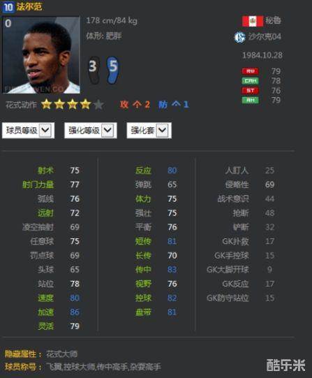 当年的法尔范可谓是身体、速度、爆发力结合于一体的球星,出色的速度和控球使他没少和巴萨传绯闻,他在沙尔克每一年的状态都保持的还不错,10U法尔范的数值简直爆炸,关键属性都在80+,适合打RW或者RM,同10U埃斯库德罗一起梳理沙尔克04的左右两个边路,肥胖模型,花式四星,手感也是棒棒的,带球和传中都很顺手,重点推荐“矿工”迷入得边路球员。