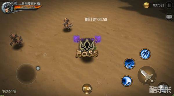 240层的场地背景是沙漠,和其他场景比起来空间更大,有很大的可移动空间,在左下角还有个死胡同,可以利用吸引BOSS集中过去。