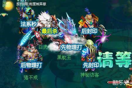 推荐打法:封印神秘访客,杀人头陀,物理系速度秒黑蛟王,法系点无面,之后按顺序是是猪不戒,头陀,主怪。主要需要注意的是别被主怪秒了。