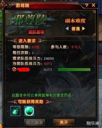 40级以上勇士可以进入邪尊陵,每天可以进入1次。必须至少3名以上队友才能开启副本挑战!