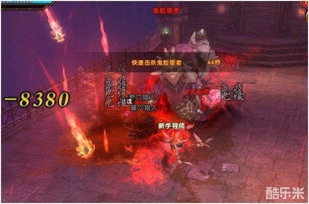 鬼脸使者击杀要点:boss会每隔15秒左右释放一次火雨技能,在火雨区域内造成大量群体伤害,要及时走位闪躲,火雨的持续伤害力是非常高的,对于后排攻击输出的职业要尤为注意(幻弓,法师,药师),若boss在自身周围释放火雨,战士要及时将boss引离火雨区域,避免近战职业损血过多;