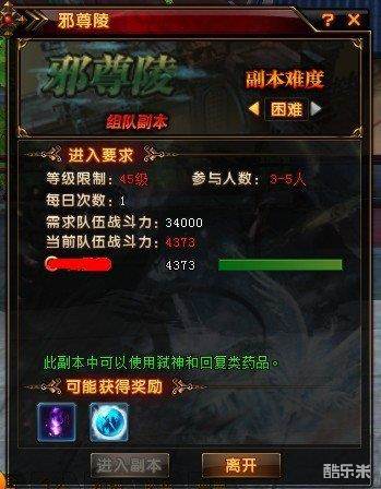 当角色等级达到45级时,可以组上队友挑战邪尊陵【困难】级别副本,将会获得更丰富的奖励!