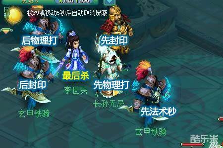 注意事项:李世民:天宫门派的李世民,可封印,会所有召唤兽群体技能;长孙无忌:已知可能的门派为龙宫和魔王,法连,法爆,伤害能力相当惊人;段志玄:会绝大多数的封印法术,而且一封就是仨,虽然不一定全部命中,不过既然你敢这么嘲讽,那就做好第一个被清理出局的觉悟吧;玄甲铁骑:3个,门派随机,和所有的龙套一样,没有任何特点,纯粹凑数的。