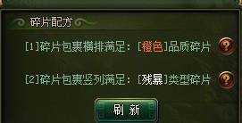 目前为止,橙装的来源只有一个,那就是通过斩兽系统中的碎片合成来获得。要通过碎片合成橙装,首先要满足配方的要求。碎片配方主要有横排和竖排两种,横排要求碎片颜色,而竖排要求碎片类型。
