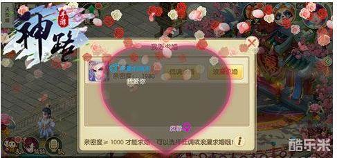 在《神路》当中情投意合的两个人是可以结为夫妻的,不过呢这个结婚可不是一句话就能搞定的哦,结婚的双方都必须登记打到50级并且亲密度达到1000才行,而且求婚分为低调求婚和浪漫求婚两种,如果不想让太多人知道就可以选择低调求婚,求婚信息只会发送到对方的私人频道中,如果想要浪漫求婚,求婚话语则会被全服知晓,并且求婚时会在全世界洒出浪漫花瓣,简直会羡煞旁人!