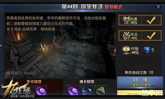 随着关卡难度的越来越高,我们来到了炼狱模式第四章节。在第五章节——鬼神黩武中,战斗将在隐匿地宫中进行,怪物、BOSS都变得愈发强大,低于40万战斗力的玩家在这一章的众多关卡中显有存活。玩家在闯关前,一定要花费500金币分别购买血量和攻击的增益buff,可以提升10%的血量和10%的攻击!
