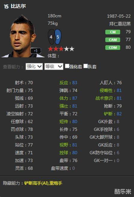 FIFAOL315比达尔 全面的中场防守球员