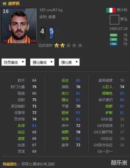 原来14W德罗西受众面并不广,因为他和其他后腰相比没有太过出色的方面,好比是中场的莱万多夫斯基。在新版本下,随着体力的吃紧和全面性的重要性越发重要之际,14W德罗西显得特别舒坦,是张不错的卡。在防守中实测总是能协防好插上的对方队员,起到保护的作用,另外15德罗西的加强,也是可以让广大玩家一试的,效果与14W德罗西类似。同时他也是攻2防3的参与度,保证了场上的防守效率。最好是与15马蒂奇搭配,一个拦截,一个扫荡,与08埃辛比较接近。