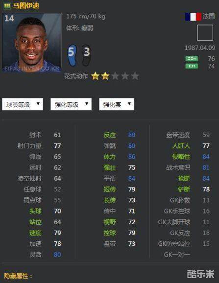 在体力为先的条件下,14W马图伊迪占据了良好优势,同时具备了高侵略性、高抢断力的属性,让他成为新一代的扫荡型后腰,可以媲美08埃辛的全能性,但不如埃辛的身体素质。单卡14W马图伊迪拥有86体力,79速度,在回追上和传球上都能快速处理,他需要和以上二位其一配合双后腰的话,威力会更大,防守效果更佳。同时攻3防3的参与度在CDM中也是难能可见,可以更好地处理进攻与防守之间的关系。